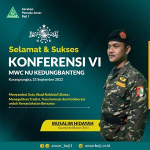 Selamat dan Sukses Konferensi VI MWC NU Kedungbanteng. yang dilaksanakan pada Minggu, 25 September 2022 bertempat di Gedung MWC NU Kedungbanteng.